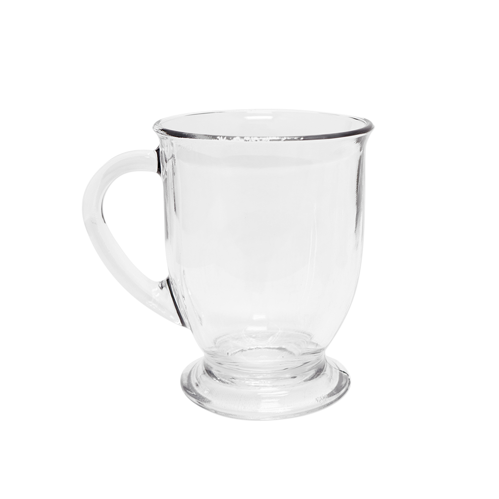 Features a timeless design with tapered glass and an elegantly curved handle