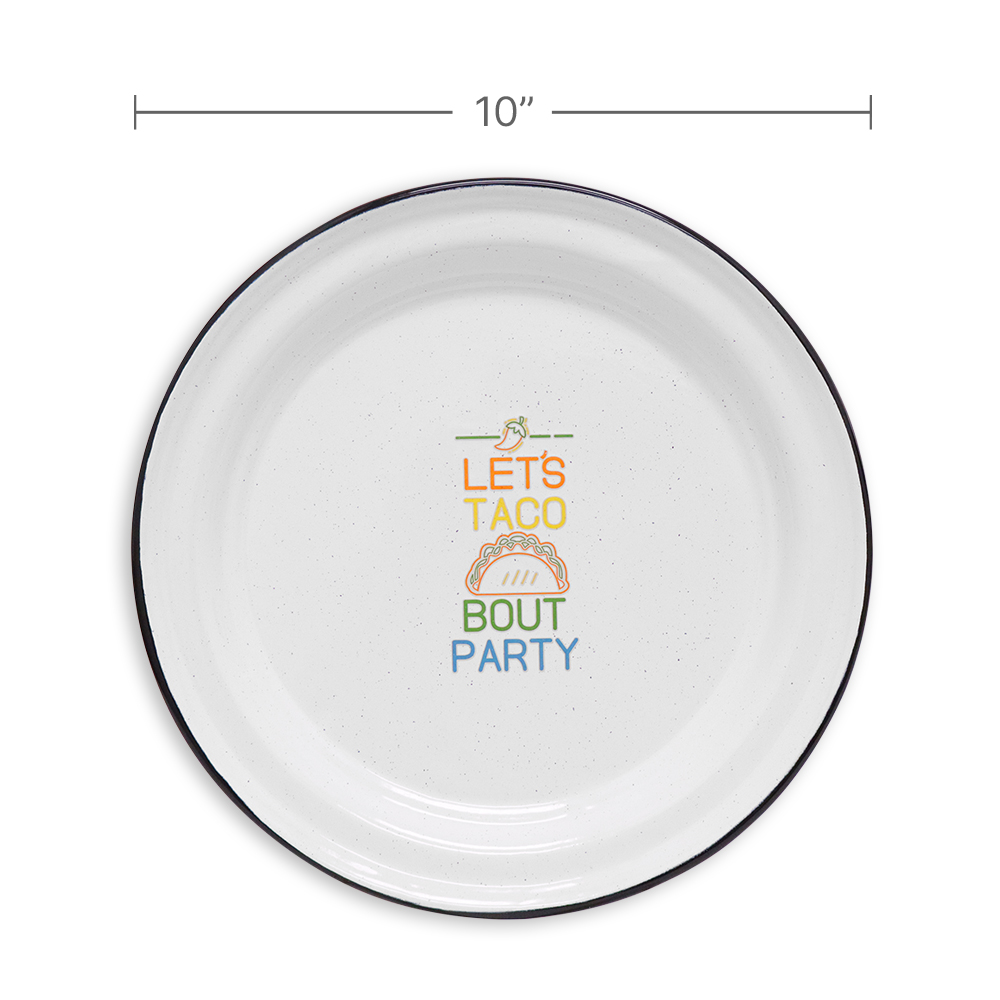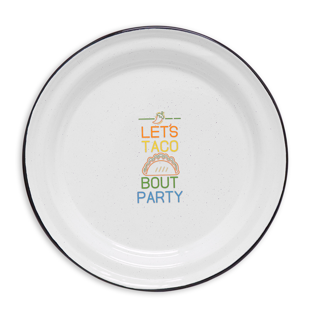 Graphic quote “LETS TACO BOUT PARTY” in the center of plate