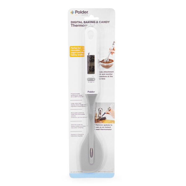 Removable high-heat silicone spatula attachment monitors temperatures while stirring